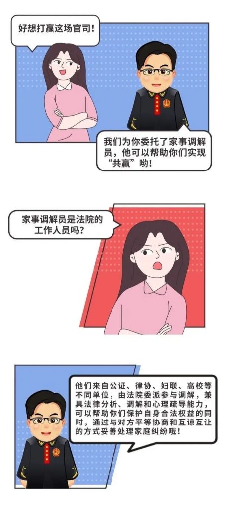我依托家事调解员和公证员的双重身份,根据长期提供家事方面公证服务的经验,运用法律专业分析的手段进行家事调解,协助法官参与继承、离婚、抚养等家事案件的调解和调查。同时,运用家事领域的公证服务工具与法院诉讼有效形成互补,以更好地为当事人提供“共赢”方案!