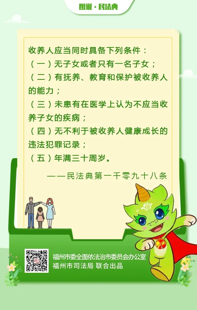 法治福州 微信公号 法条 链接 中国首部民法典将《中华人民共和国收养法》纳入到婚姻家庭编中,不仅在具体规定上对收养法进行了一定的修订与完善,并且在一般规定部分明确了收养制度的基本原则。将被收养人的权益放在第一位,是民法典全方位呵护未成年人健康成长的重要体现。 协议离婚同居夫妻共同债务夫妻共同房产夫妻共同财产婚姻关系存续期间婚姻律师子女抚养家事律师家暴打印遗嘱抚养权纠纷拆迁安置法定继承法定继承纠纷福州婚姻律师福州家事律师福州律师精神损害赔偿财富传承,继承,继承律师,福州继承律师分享此文新浪微博微信腾讯微博QQ空间人人网 相关文章福州律师蔡思斌分享:法答网精选答问(第二十七批)——未成年人司法保护专题2025年8月28日福州律师分享:法答网精选答问(第二十三批)——婚姻家庭专题2025年7月30日福州律师提醒:注意:婚前隐瞒这几类重大疾病,配偶方有权撤销婚姻!2025年7月4日福州家事律师分享:(2025年)民政部社会事务司婚姻登记“全国通办”政策问答2025年5月12日福州律师分享:最高法发布第二批人民法院涉彩礼纠纷典型案例2025年4月24日福州律师解读:全文逐条解读!最高院发布婚姻家庭编司法解释(二),2025年2月1日施行2025年1月16日